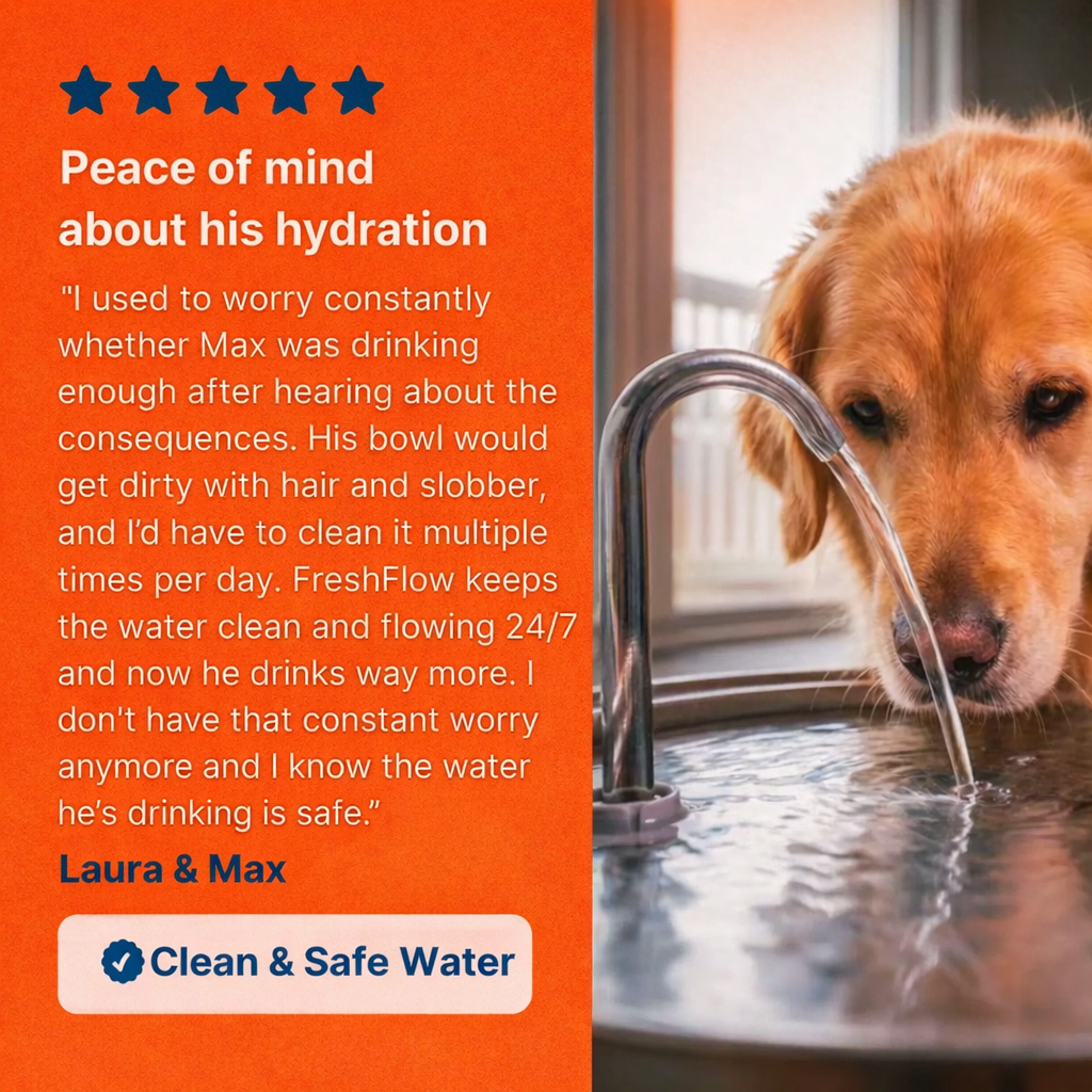 Over 80% of dogs are chronically dehydrated. These 3 unique features from FreshFlow prevent this by encouraging pets to drink more.