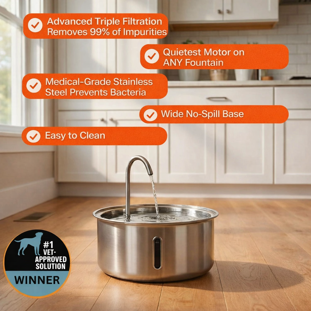 This constant circulation, combined with the triple filtration system, effectively removes impurities, pet hair, and odors while improving overall water quality. The 304 stainless steel construction further ensures cleanliness by preventing bacterial growth that commonly occurs in plastic fountains.